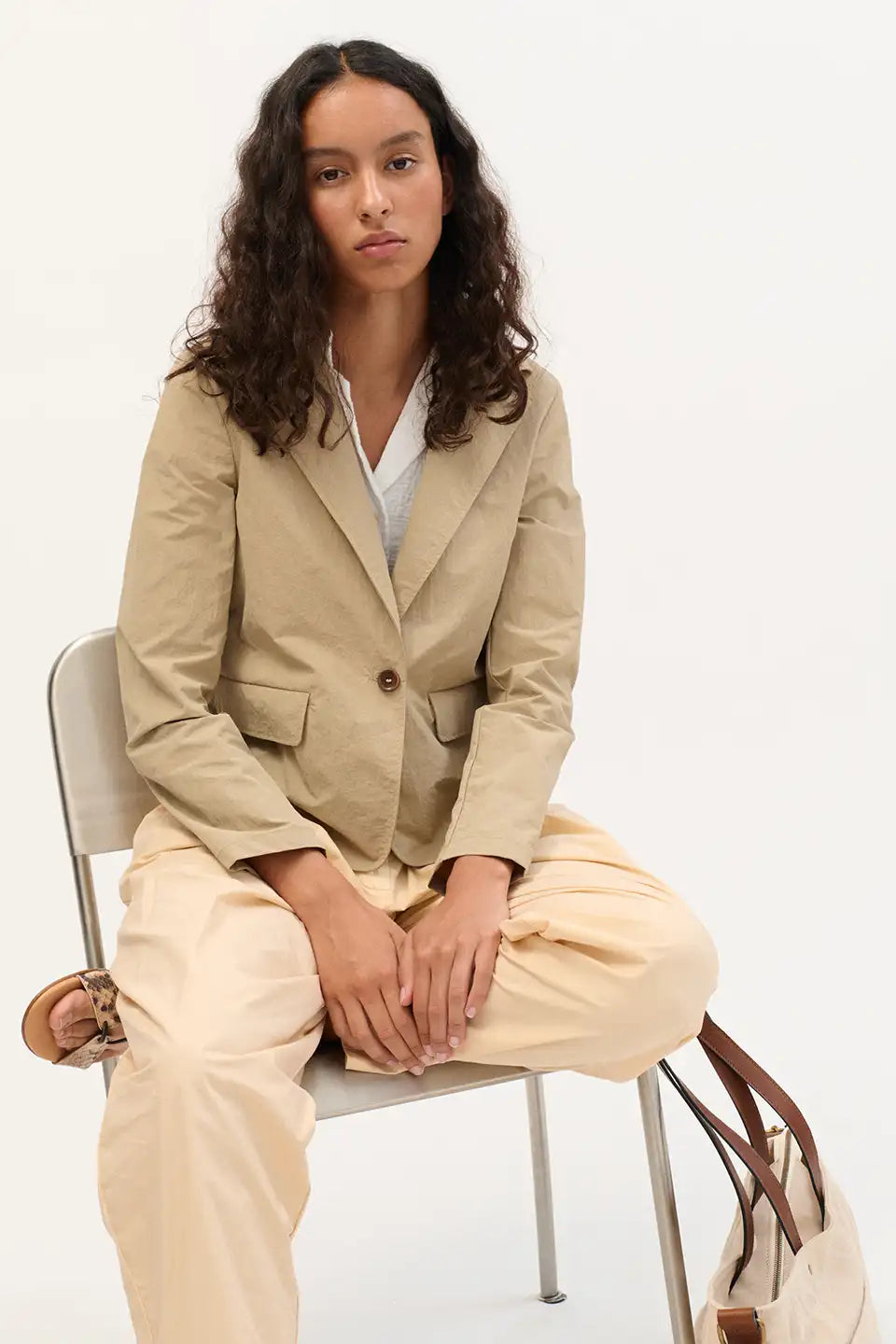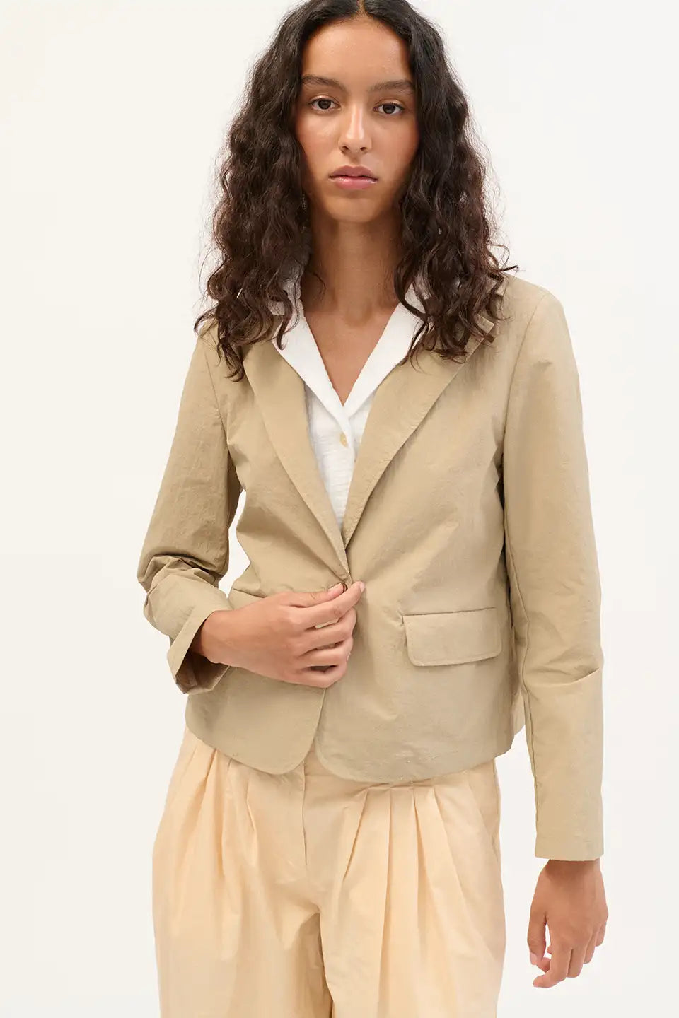 Americana corta en tejido técnico water-repellent con cuello solapa