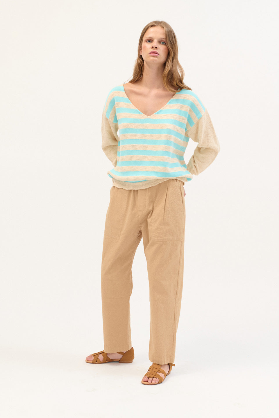 Jersey de punto rústico de algodón listado de fit ligeramente oversize