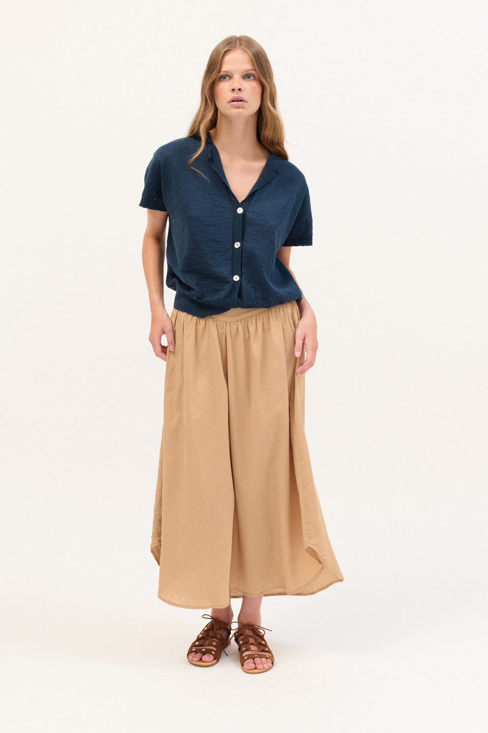 Fine quality rustic cotton-linen jersey in a regular fit