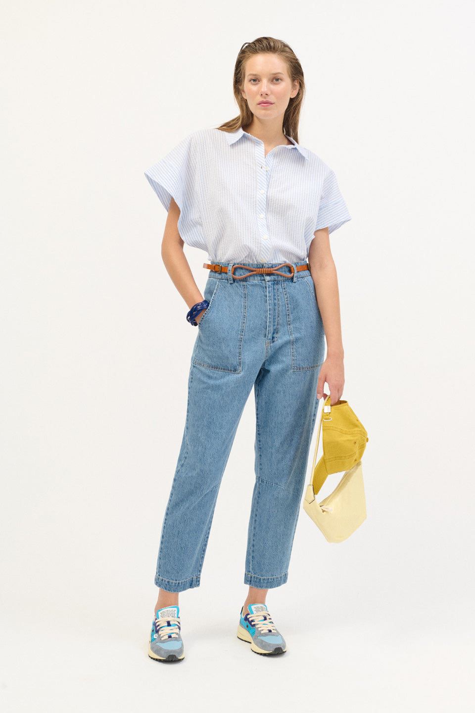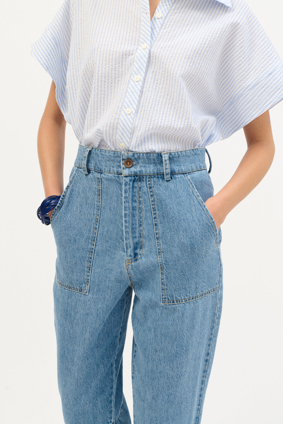 Pantalón denim bleach recto de fit slim y tiro alto