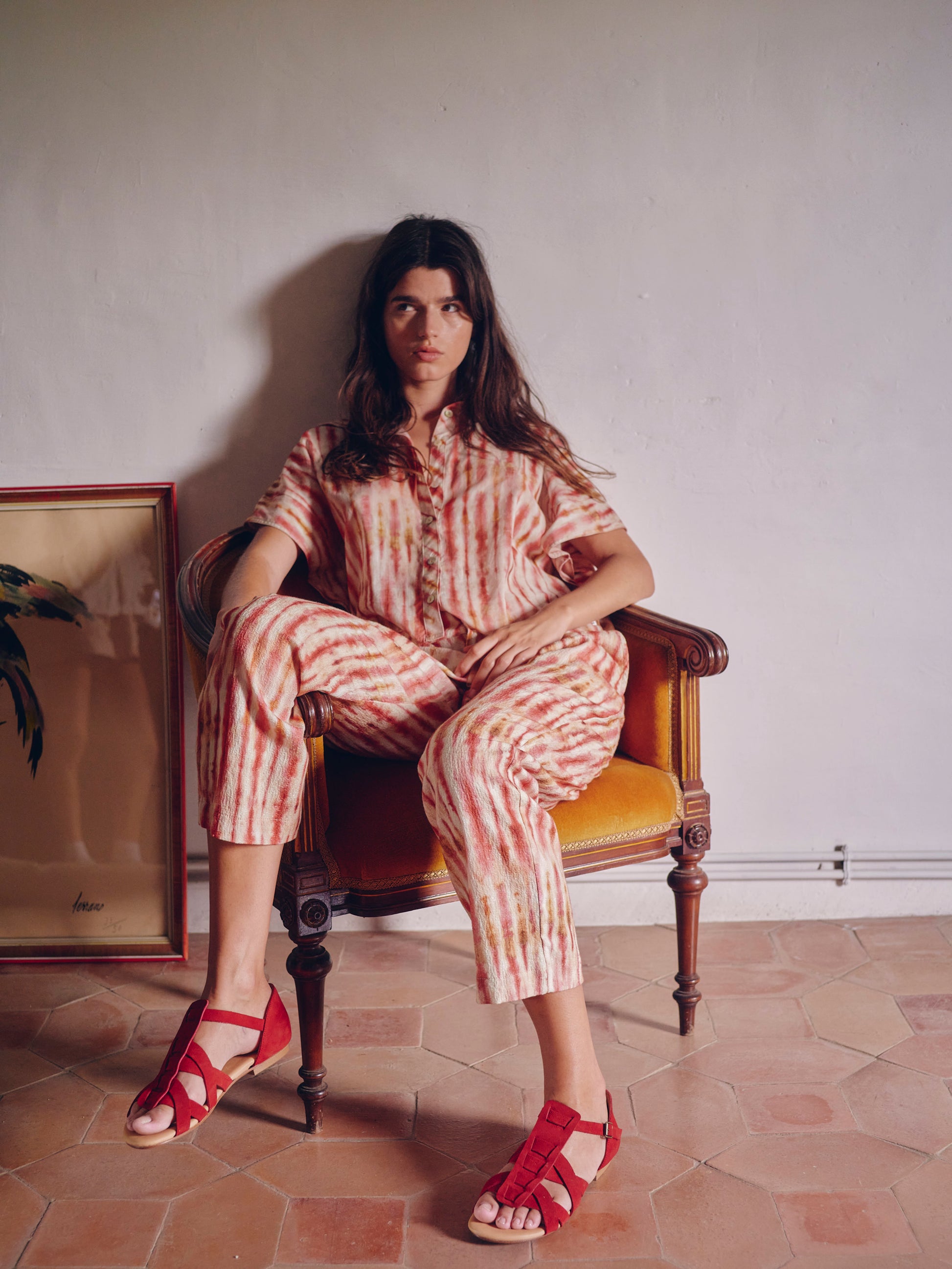 Diseño inspirado en el estilo tradicional de pescador con tiras cruzadas curvas en la parte delantera
