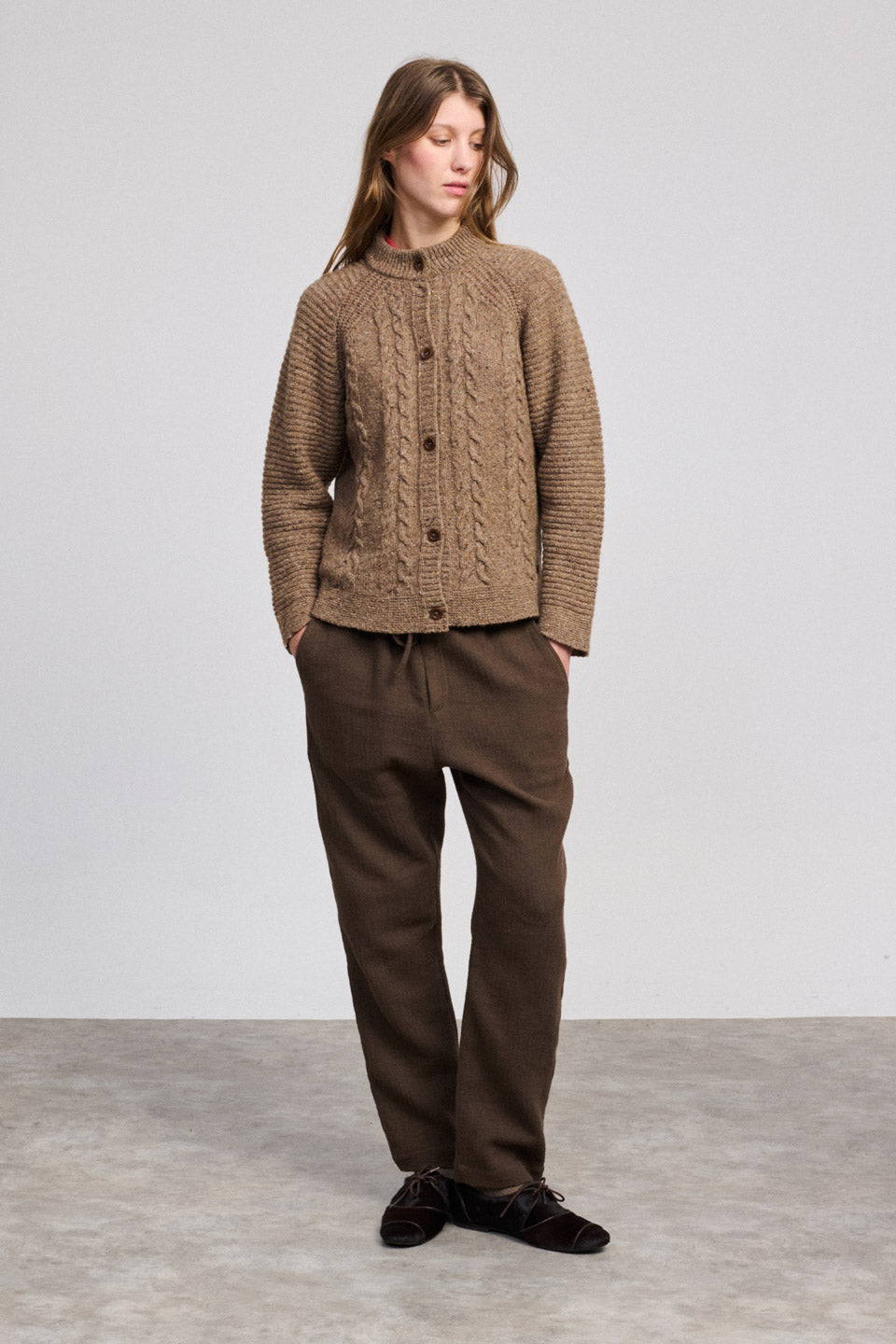 Mocassin plat en cuir de vachette avec bordure en cuir