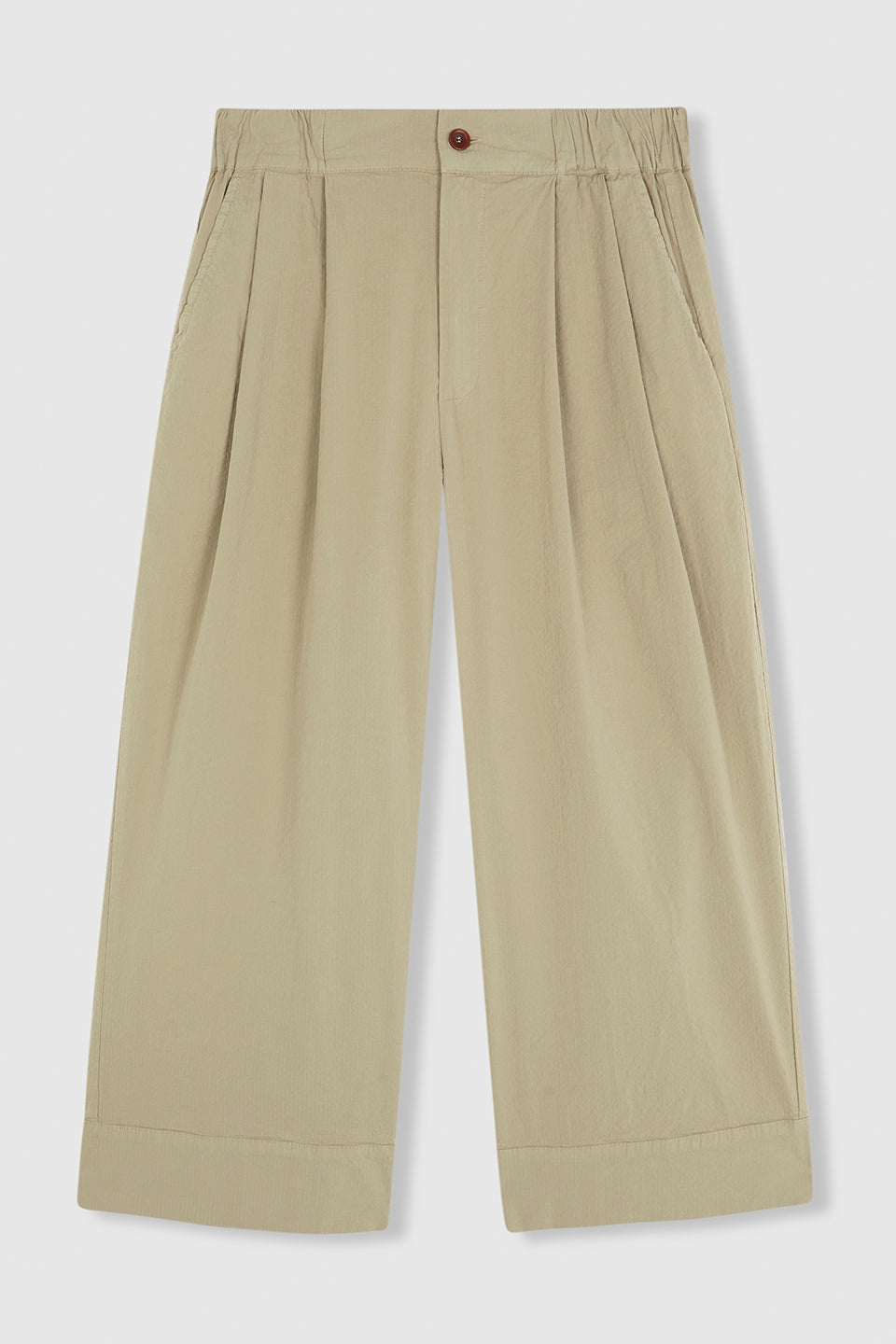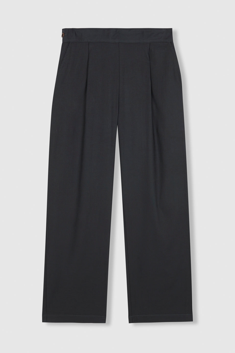 Le contraste entre la fluidité du chemisier et la structure du pantalon crée un look élégant et simple.