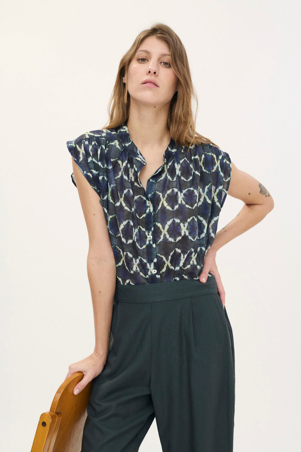 Un chemisier fluide associé à un pantalon droit est la combinaison idéale pour une allure sophistiquée et facile à porter. Pour une touche de couleur et de personnalité, optez pour un chemisier à motifs, qu'ils soient floraux ou géométriques. Le contraste entre la fluidité du chemisier et la structure du pantalon crée un équilibre élégant, pour un ensemble à la fois simple et raffiné.