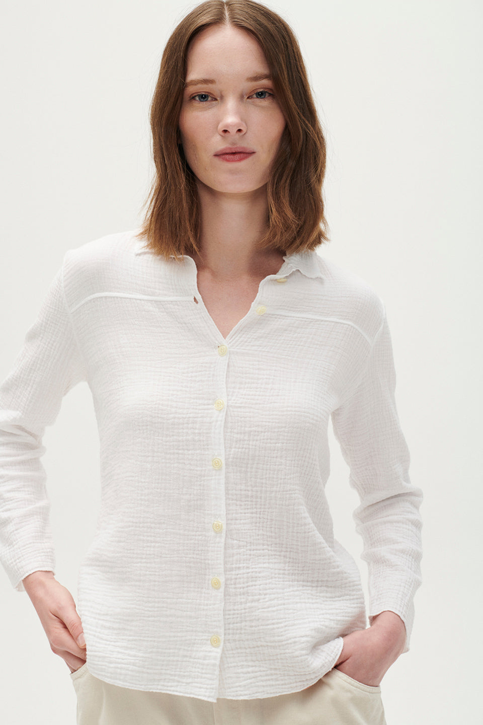 Un ensemble monochrome est un parfait exemple d'élégance minimaliste. Associez un pantalon droit en coton de couleur neutre à une chemise blanche. Le secret réside dans la coupe : des vêtements bien taillés aux lignes épurées pour une silhouette sophistiquée. Ajoutez un blazer en coton de la même teinte pour structurer l'ensemble.