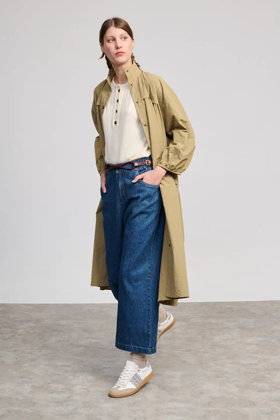 Le mannequin porte une taille M et mesure 179 cm.