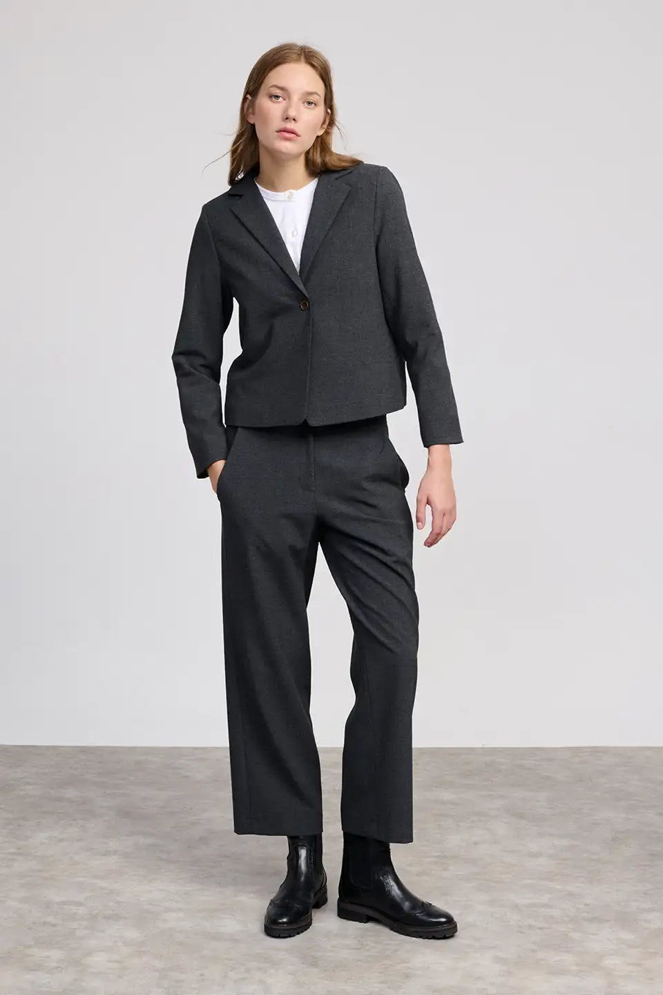 Confeccionada en 68% poliéster, 29% viscosa y 3% elastano
