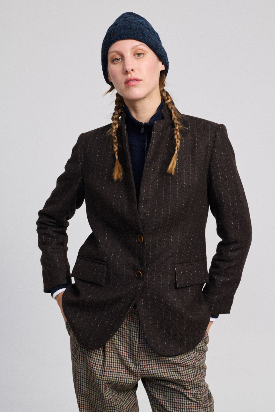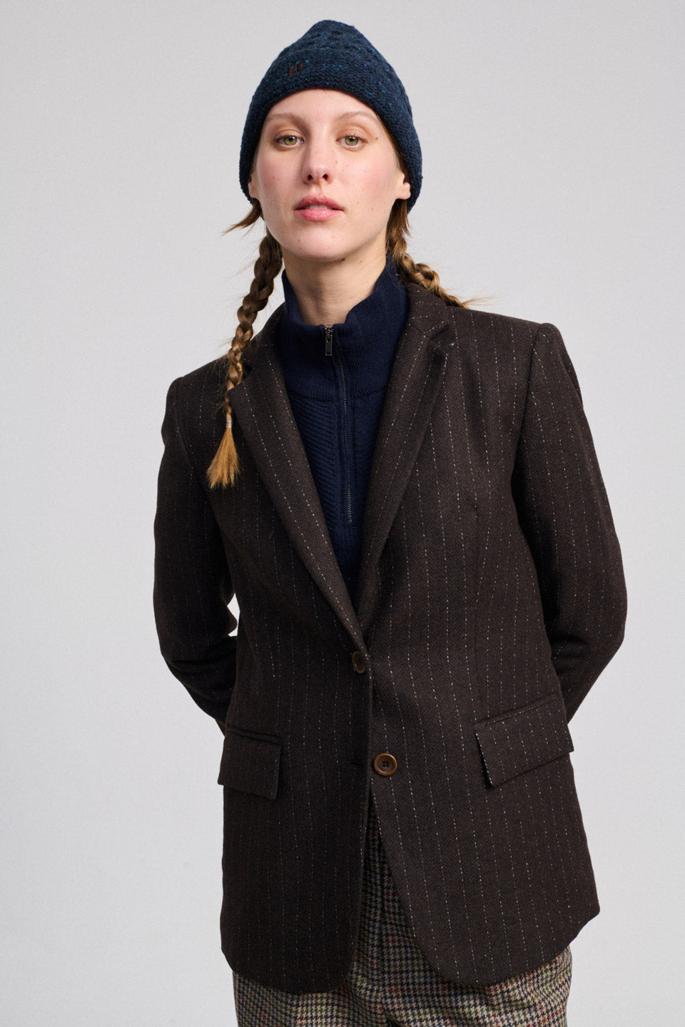 Confeccionado en 55% lana, 30% poliéster, 10% poliamida, 4% otras fibras, 1% elastano