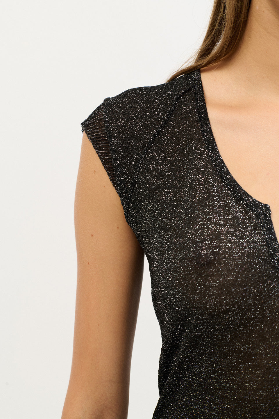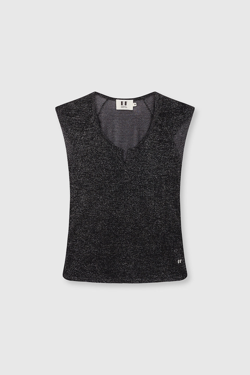 Confeccionado en 78% viscosa Ecovero y 22% fibra metalizada